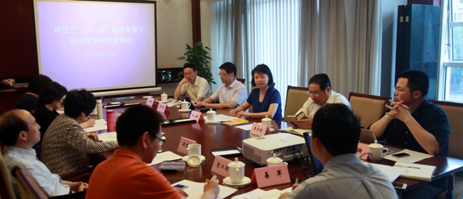 6月23日,教育部语信司在北京召开推进“一带一路”战略背景下语言规划研究座谈会,会议围绕“一带一路”战略背景下的语言规划研究进行了深入研讨。我校语言研究院专职研究员,中国外语战略研究中心副主任沈骑教授参加会议。